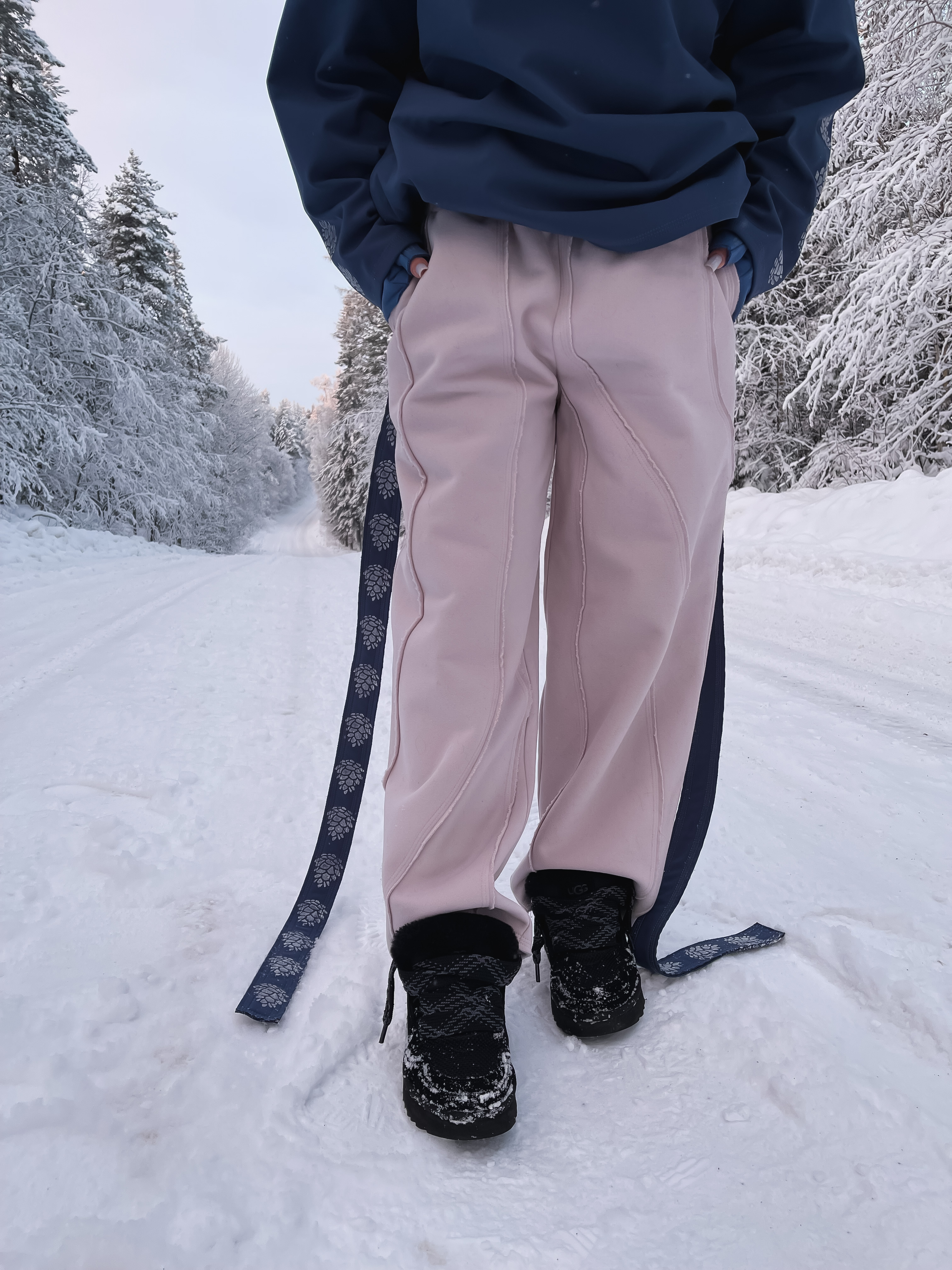 Брюки Берег моря, утепленные с начёсом. Отстроченный узор берега Белого моря