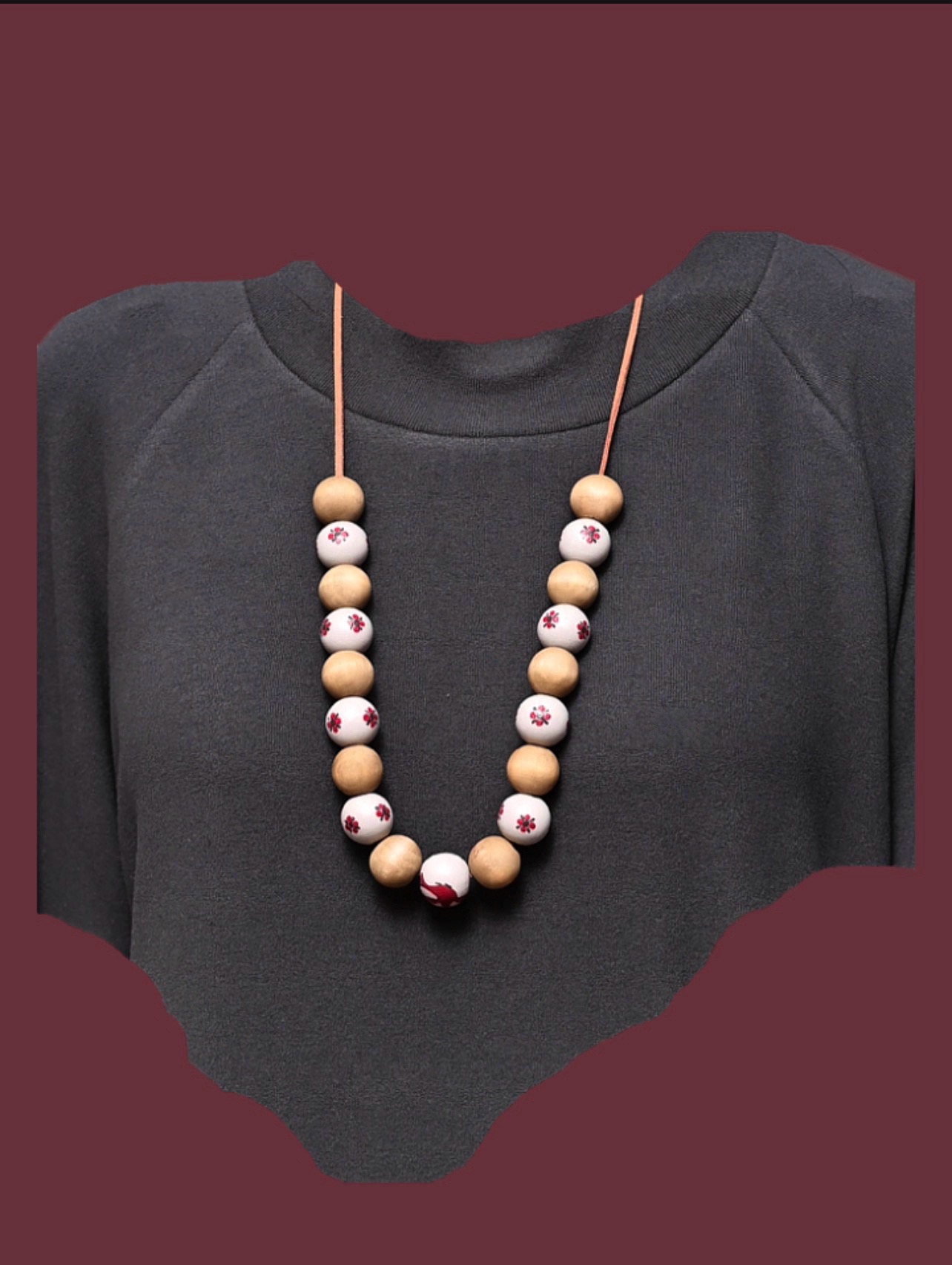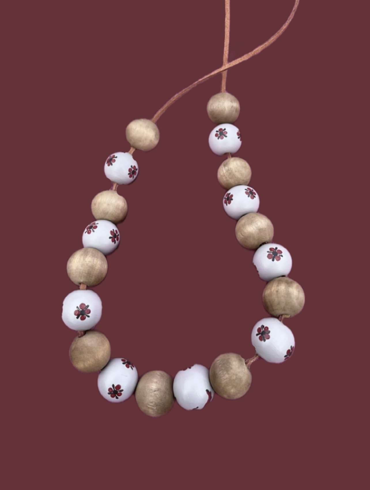 Бусы из дерева со старинной росписью по заказу для дополнения образов коллекций «ОДЁХА» от ремесленной мастерской «МАРЁ»