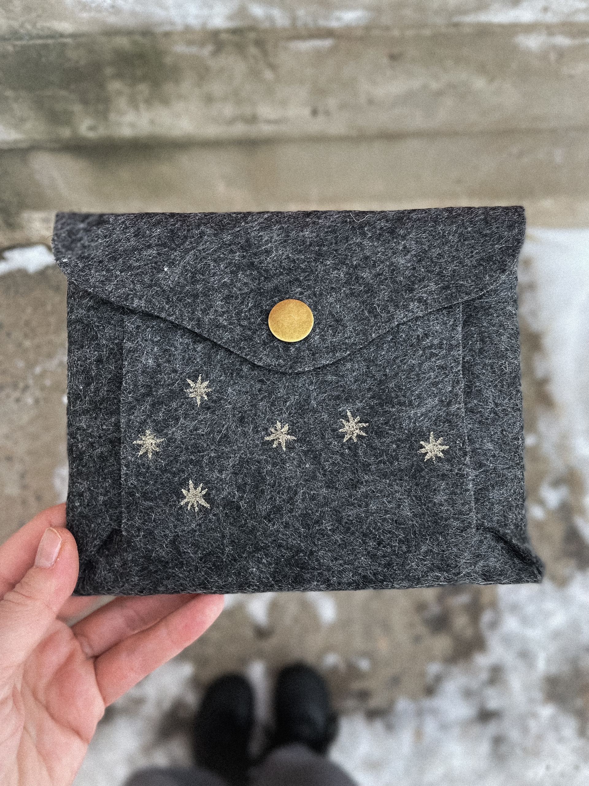 Млечный Путь и созвездия Большой и Малой Медведиц в ручной росписи на сумке для ноутбука от ОДЁХА Совместно с мастерицей Марина Мошникова МАРЁ ~ мастерская росписи по дереву Связь с созвездиями Большой Медведицы и Полярной звезды (в Малой Медведице) помогала найти направление на север. Млечный Путь, протянувшийся через всё небо, дополнял эту небесную карту. Так наши предки мореходы читали звёзды как открытую книгу — и находили путь даже в самой тёмной ночи. Изготовлен из нетканого материала, 100% пэ Цвет темно-серый Имеется в наличии: чехол для ноутбука 34 × 24 см чехол для зарядки 17 × 14 см упаковка - пыльник Рекомендации по уходу: сухая чистка