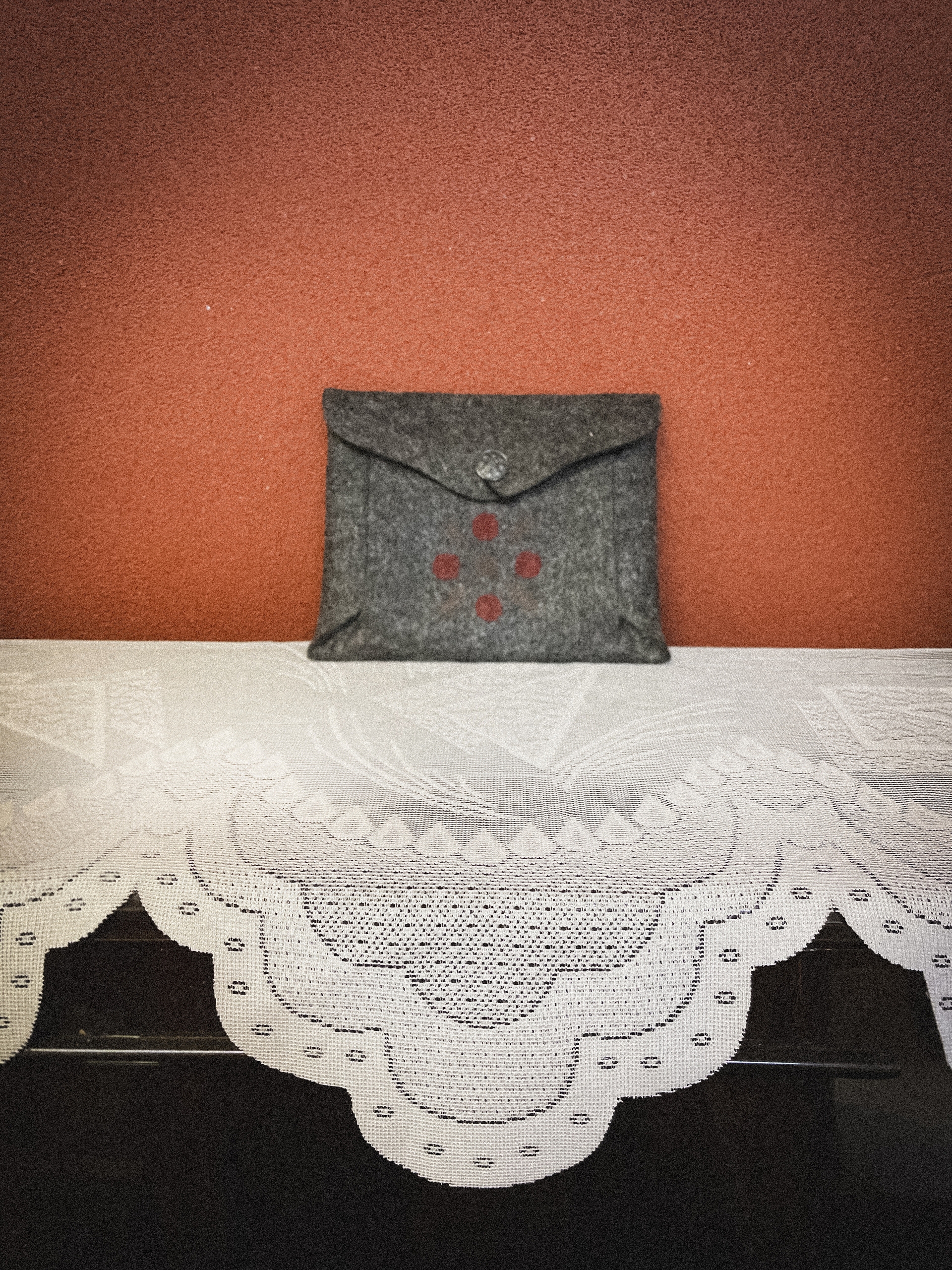 Unique hand‑painted case от ОДЁХА — уникальный чехол с ручной росписью «Тепло цветка», нанесенной Мариной Мошниковой, МАРЁ ~ мастерская росписи по дереву Изготовлен из нетканого материала в традициях Онежской росписи, застежка на металлической пуговице со звёздами. Для заказа напишите нам сообщение — и мы создадим комплект индивидуально под размер вашего ноутбука. Размеры чехла для зарядки: 17 × 14 см упаковка - пыльник Произведено в городе Онега, бренд ОДЁХА Рекомендации по уходу: сухая чистка