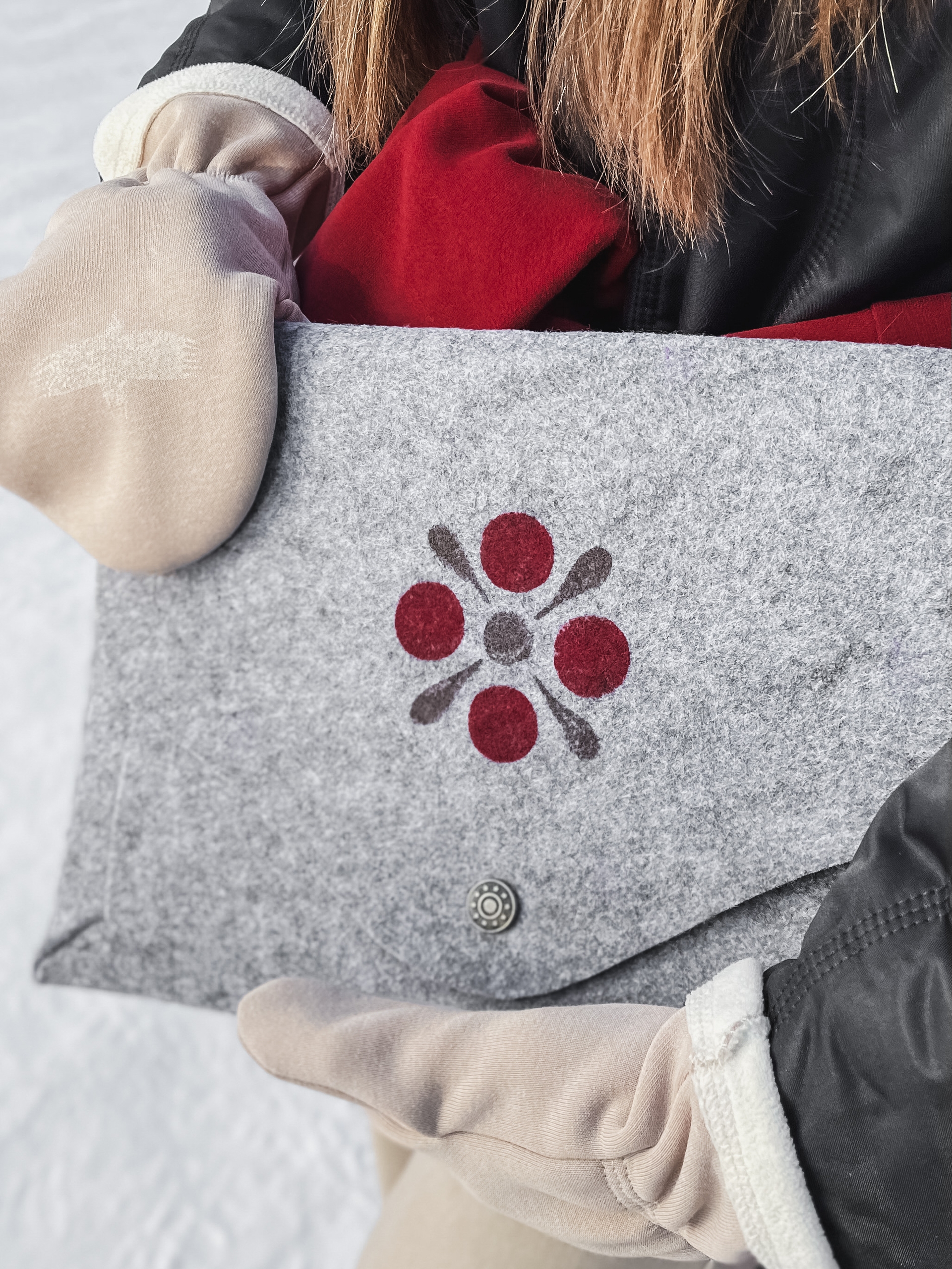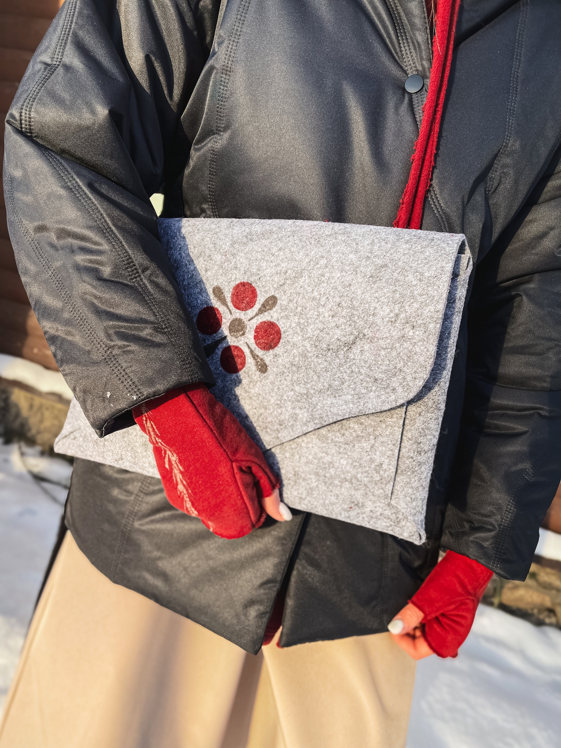 Unique hand‑painted case от ОДЁХА — уникальный чехол с ручной росписью «Тепло цветка», нанесенной Мариной Мошниковой, МАРЁ ~ мастерская росписи по дереву Изготовлен из нетканого материала в традициях Онежской росписи, застежка на металлической пуговице со звёздами. Для заказа напишите нам сообщение — и мы создадим комплект индивидуально под размер вашего ноутбука. Размеры чехла для ноутбука : 34 × 24 см упаковка - пыльник Произведено в городе Онега, бренд ОДЁХА Рекомендации по уходу: сухая чистка