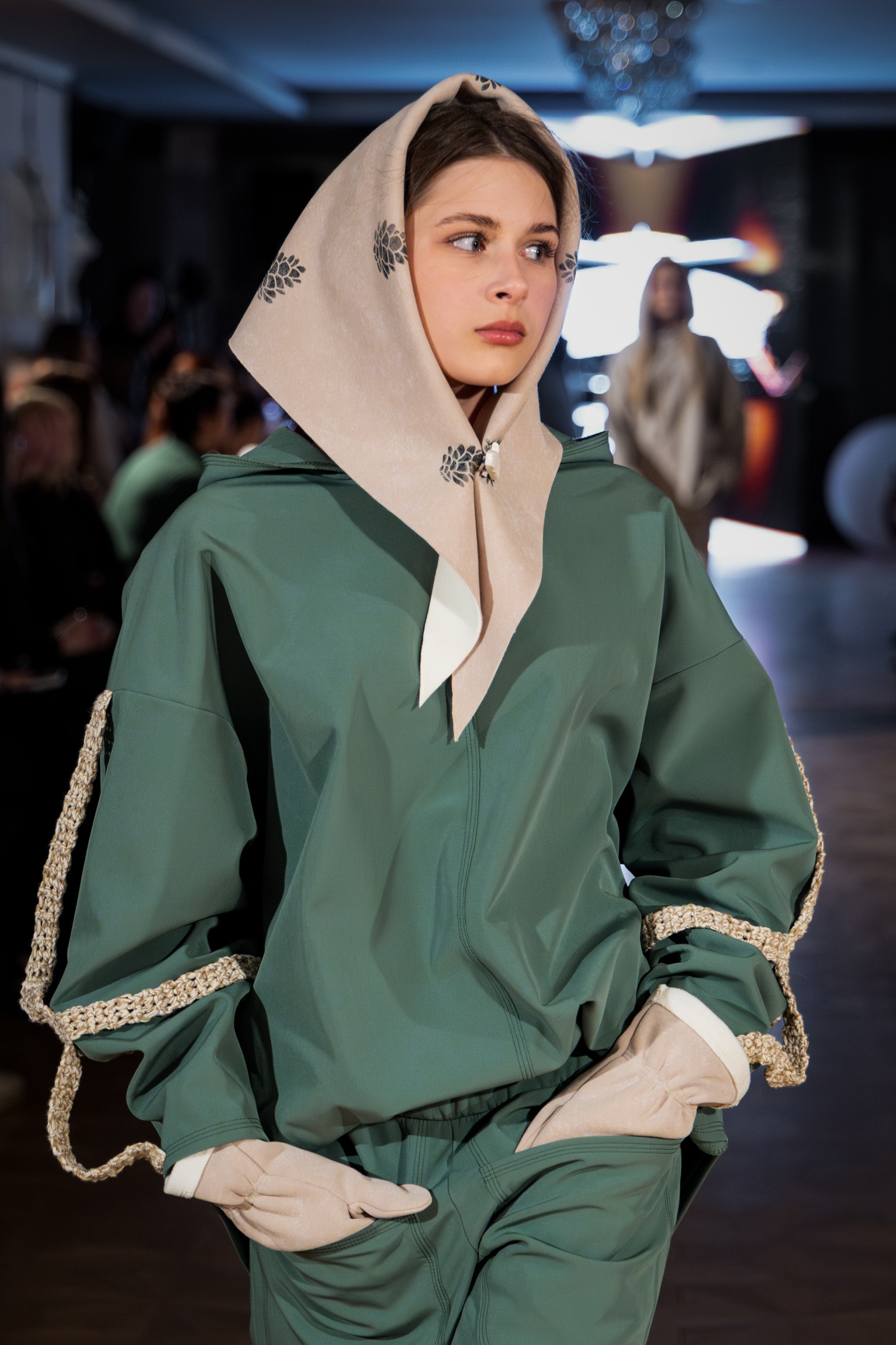 Косынка, дублированная мехом с набивным принтом «хвоя»