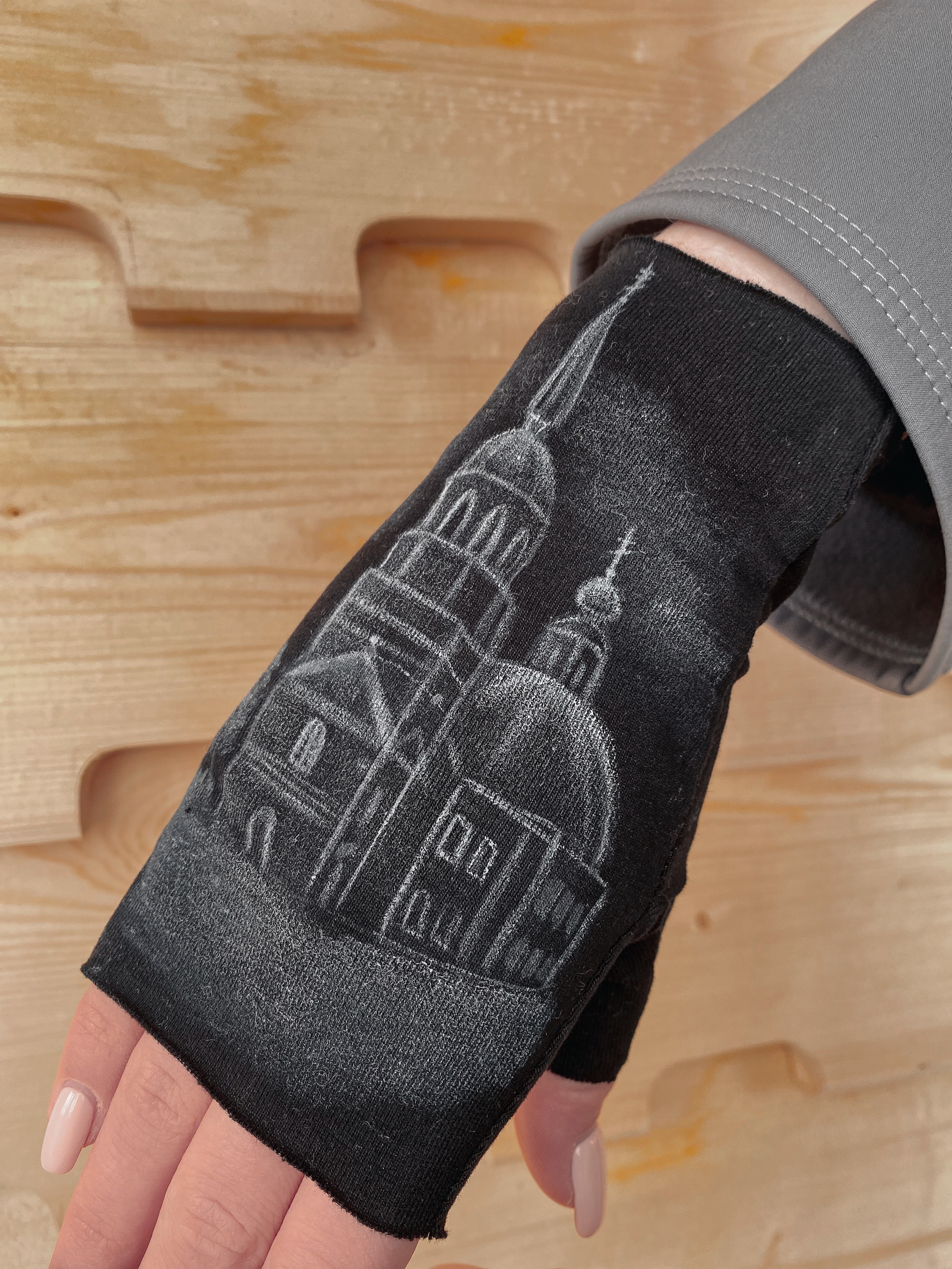 Новый творческий проект совместно с замечательной художницей Оксаной Онухиной из сообщества мастеров «Онежонки». Мы решили создать уникальную коллекцию арт-митенок с авторскими рисунками ручной работы. Совершенно случайно получилось так, что именно в страстную пятницу нам пришла идея первого эскиза и была изготовлена первая пара наших изделий.