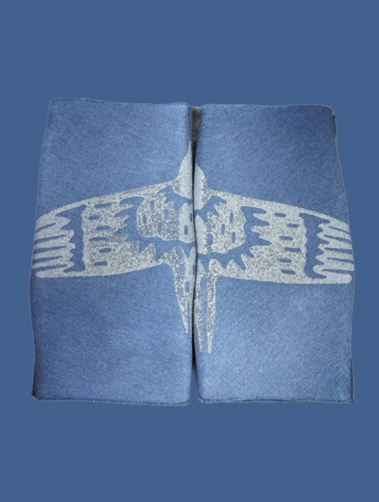 Птица с морозным орнаментом -символ бренда, набита вручную, светло-серая