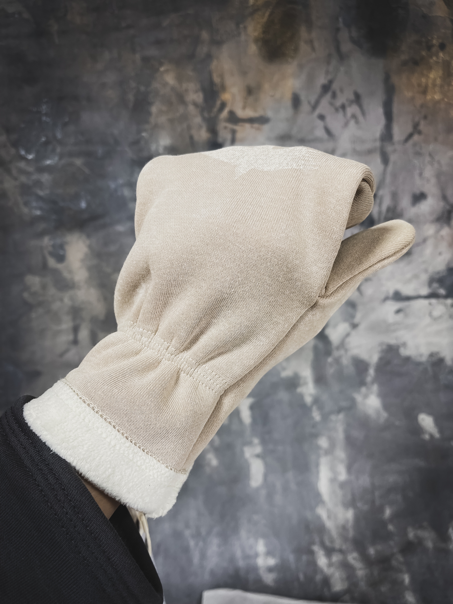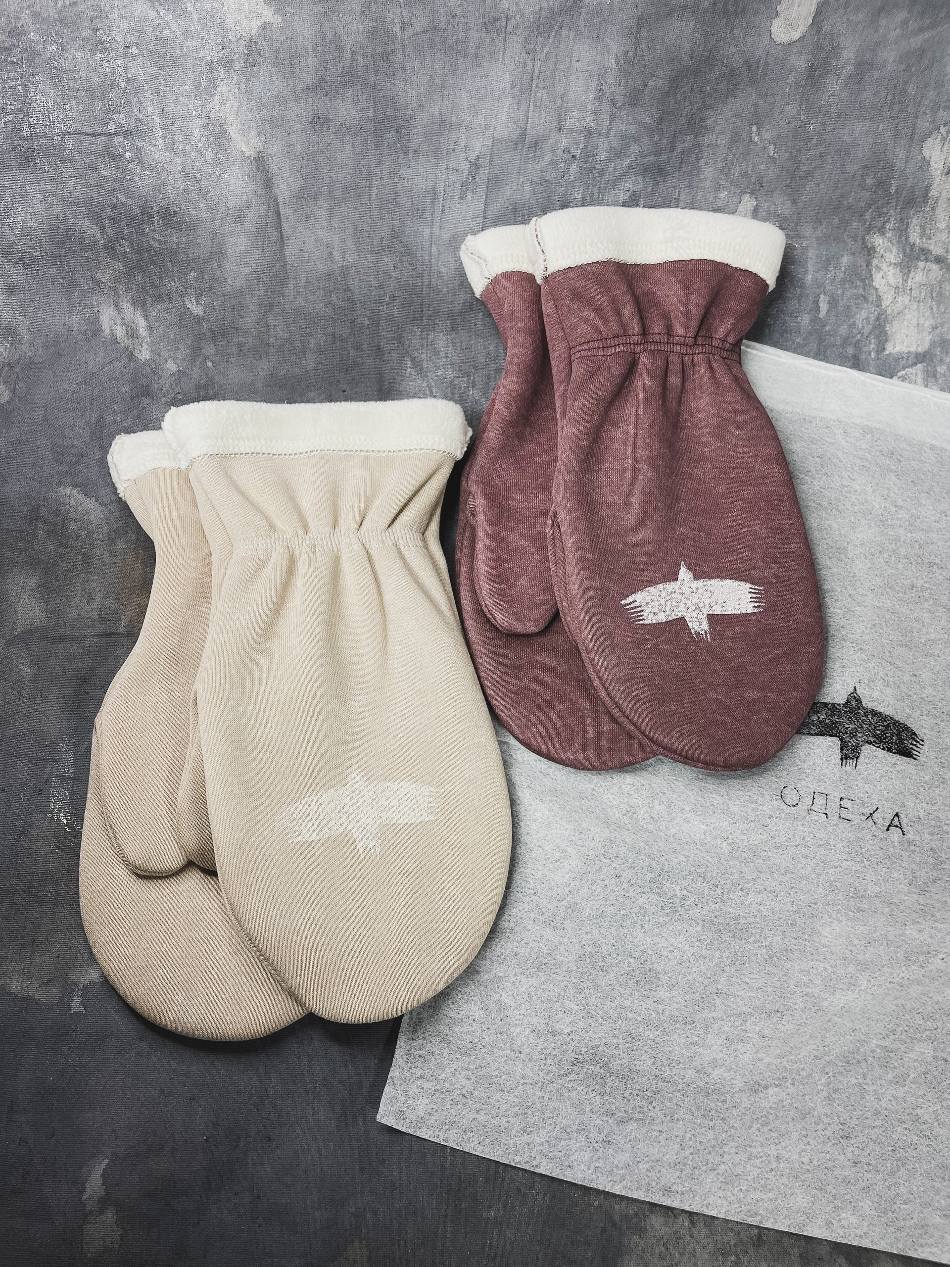 Хлопковые варежки из футера, дублированные искусственным мехом, что мягко касаются кожи, становятся защитниками тела и души, заключая в себе энергию природы.